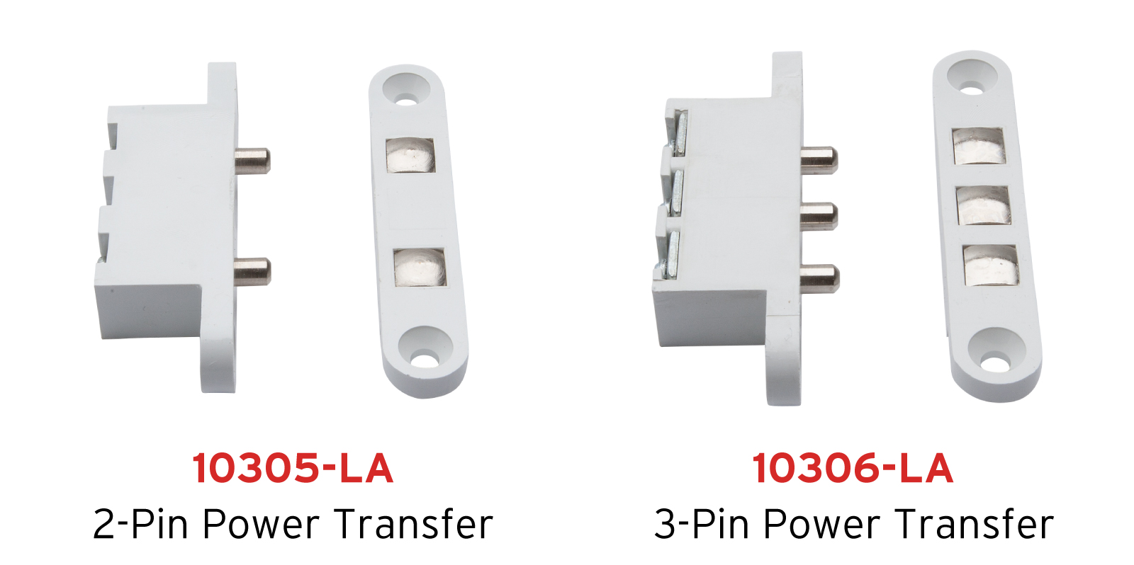 The 10305-LA and 10306-LA allow a power tranfer from the frame to the door leaf.